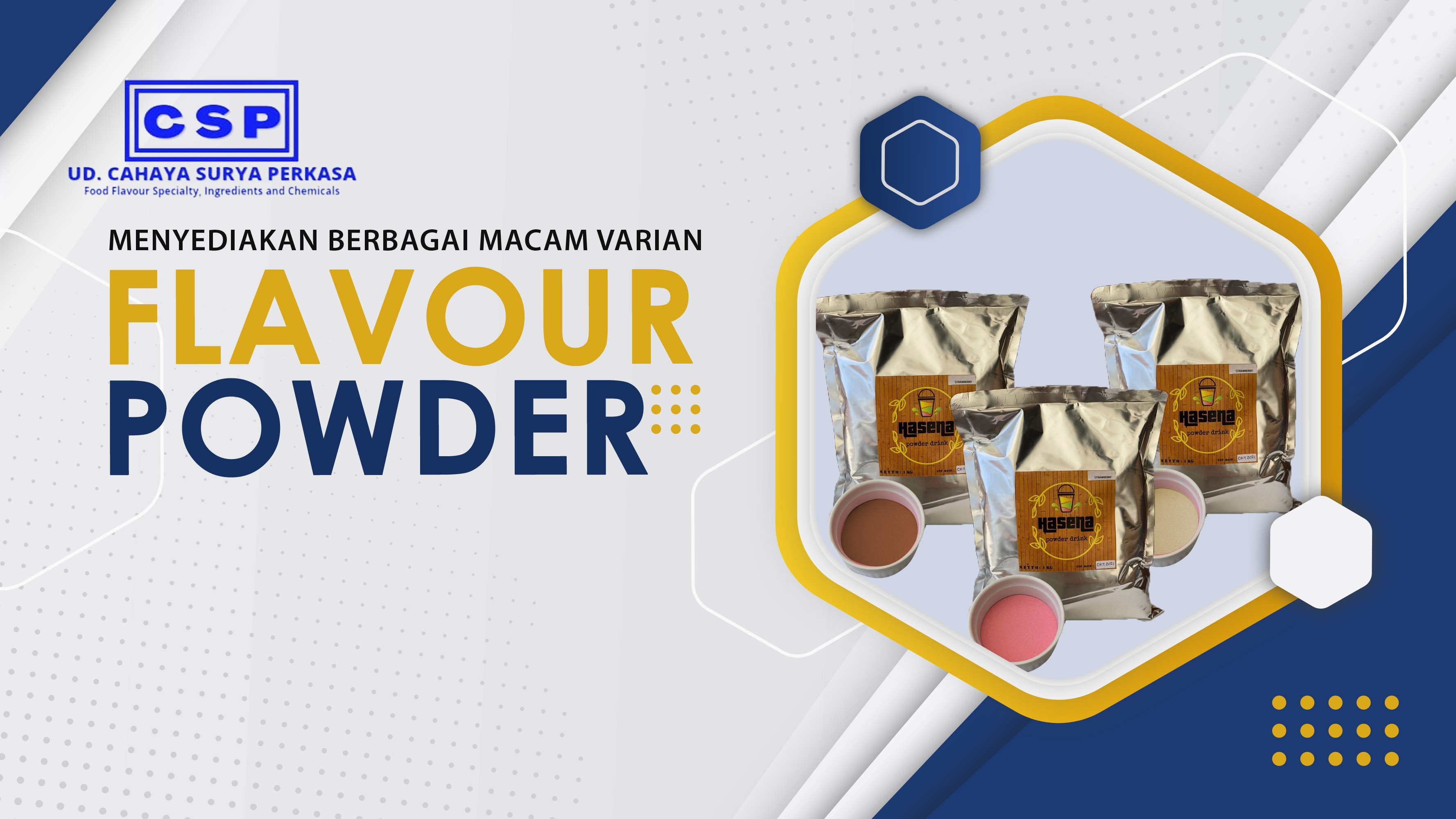 Bermula dari tahun 2013, UD.Cahaya Surya Perkasa memulai trading flavour cair. Sejak 2017 kami memulai mengembangkan produk tidak hanya di flavour, tetapi juga penyediaan bahan-bahan baku lainnya yang bisa menunjang berjalannya produksi industri makanan dan minuman baik itu skala produksi kecil hingga besar.