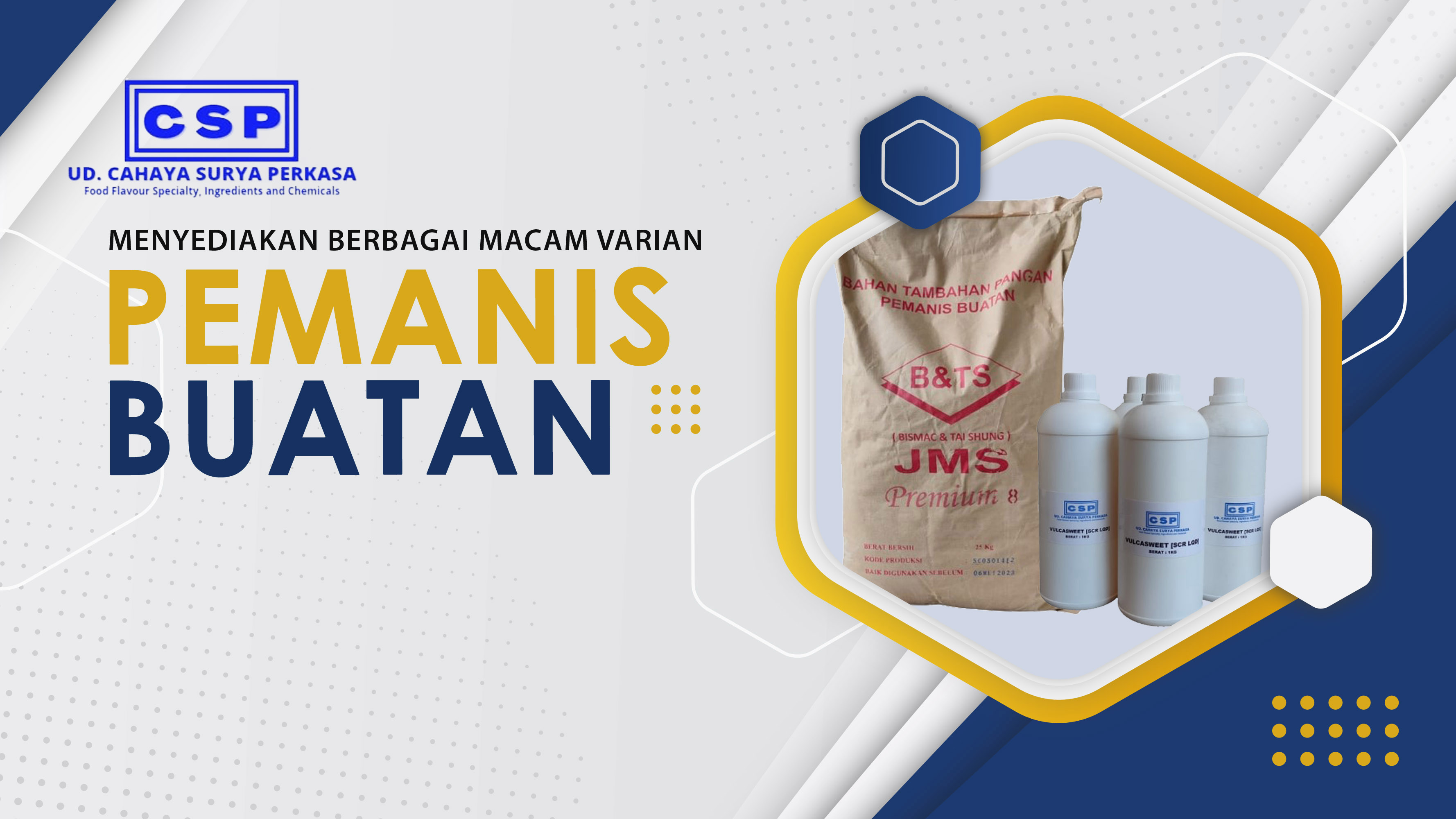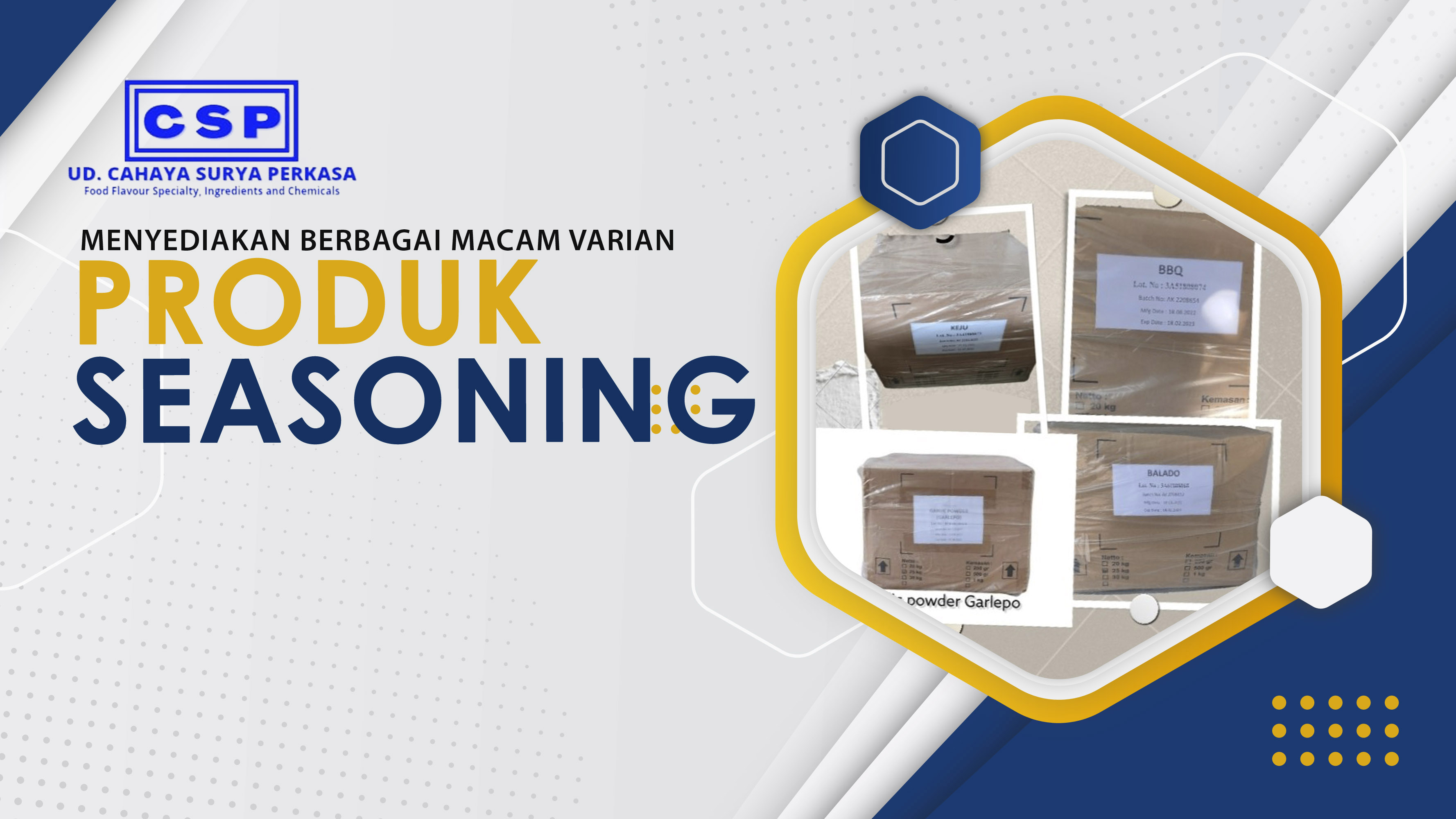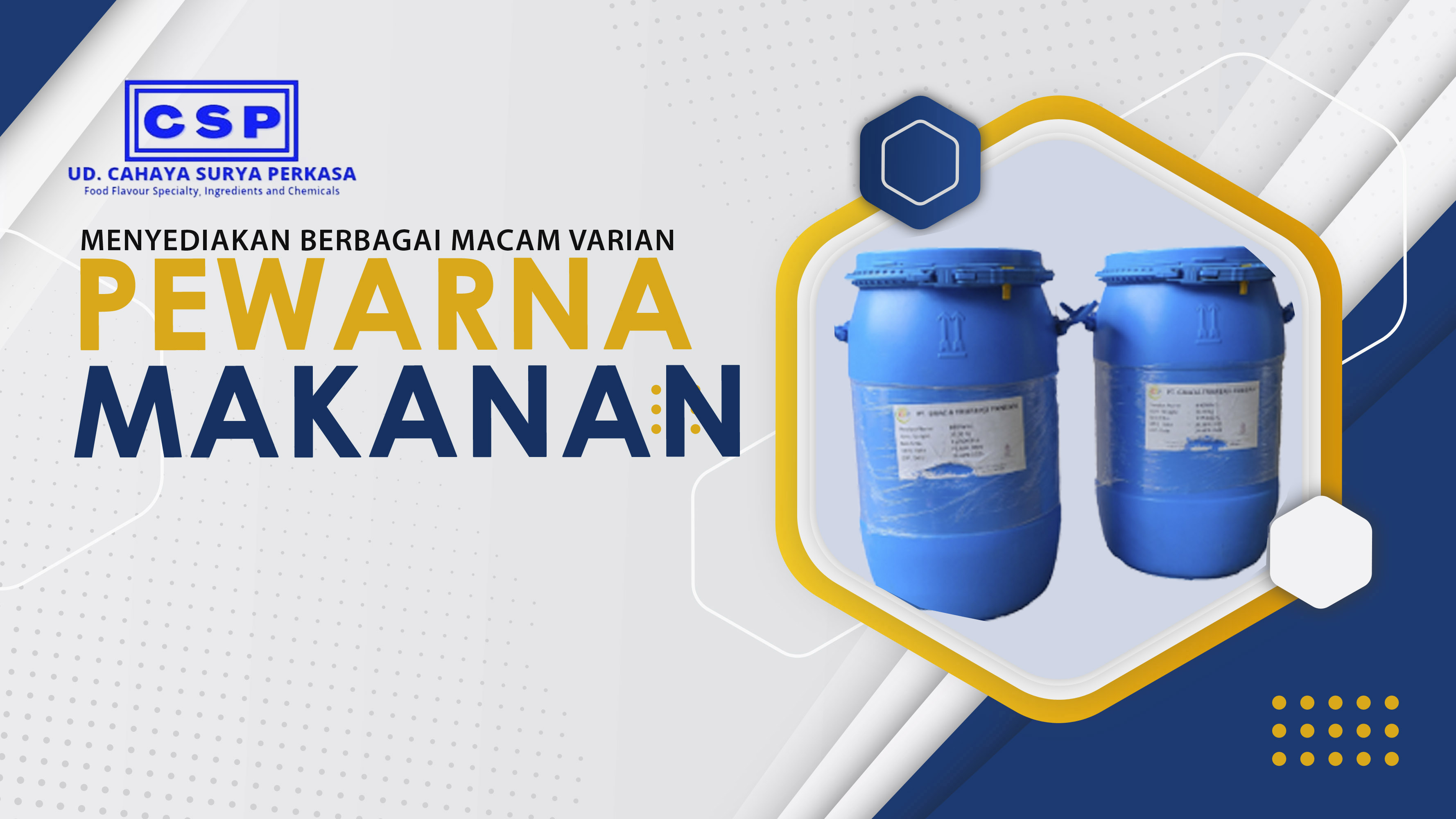Bermula dari tahun 2013, UD.Cahaya Surya Perkasa memulai trading flavour cair. Sejak 2017 kami memulai mengembangkan produk tidak hanya di flavour, tetapi juga penyediaan bahan-bahan baku lainnya yang bisa menunjang berjalannya produksi industri makanan dan minuman baik itu skala produksi kecil hingga besar.